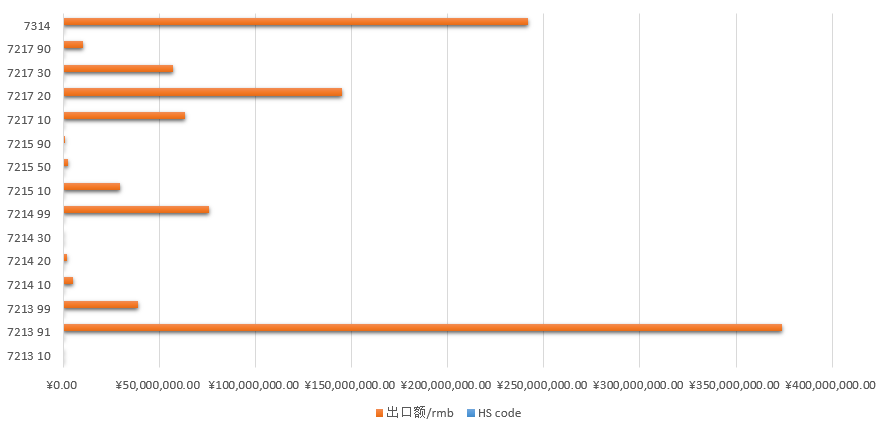 文件附录详细列出了受影响产品的海关编码(HS Code),主要涉及 7213, 7214, 7215, 7217, 7314等税号。具体产品范围如下: