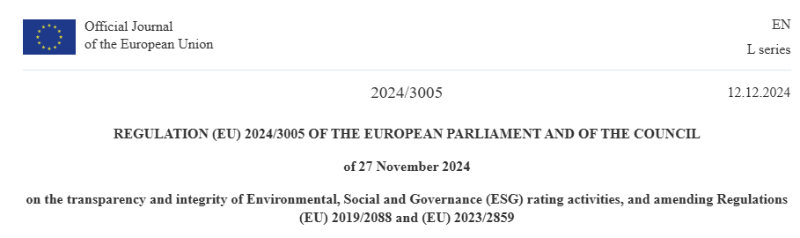 2024年12月12日,欧盟正式发布《环境、社会和治理(ESG)评级活动法规》((EU) 2024/3005),首次为ESG评级市场设立统一监管框架。新规将于2026年7月2日全面实施,旨在解决当前ESG评级市场存在的透明度不足、方法论混乱、利益冲突等核心问题,推动全球可持续金融走向标准化。